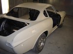 This vehicle arrived as a rusty driver. The metal work was performed, including floor pans, sub-frame cross members; one headlight rim on the front fender was repaired, new old stock outer rockers were installed over repaired inner rocker panels. New front lower fenders were welded in as well as rear doglegs and lower rear quarter panels. A substantial amount of straightening was done to the rear taillight panel as well as sheet metal repair to the lower rear valance. A new battery box was welded in as well as several adjacent areas of rust were repaired. The car was then stripped to bare metal, etch primed, epoxy primed, urethane high build primed, block sanded and re-primed. Next it was base coated in gray metallic and clear coated, wet sanded, and buffed, and reassembled. New rubber was installed and all of the glass was reassembled.